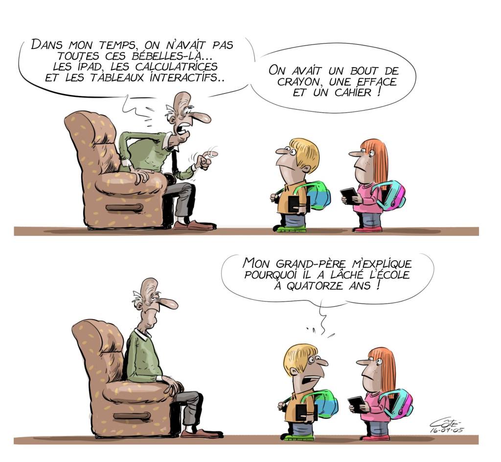 On a parlé aussi des mutations importantes qui s’y opèrent – comme dans le reste de la société d’ailleurs – où l’omniprésence du numérique semble tenir un rôle de plus en plus imposant. À l’instar des journalistes qui voient ces dernières années leur profession bousculée par la nouvelle réalité numérique, les enseignants ne sont pas en reste. (Mais ça, ça sera un sujet pour un autre billet!)